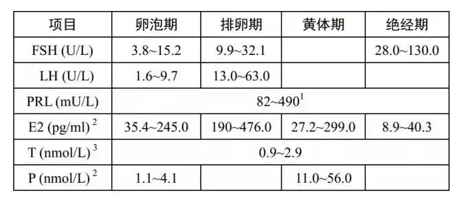 常見性激素六項及正常參考值