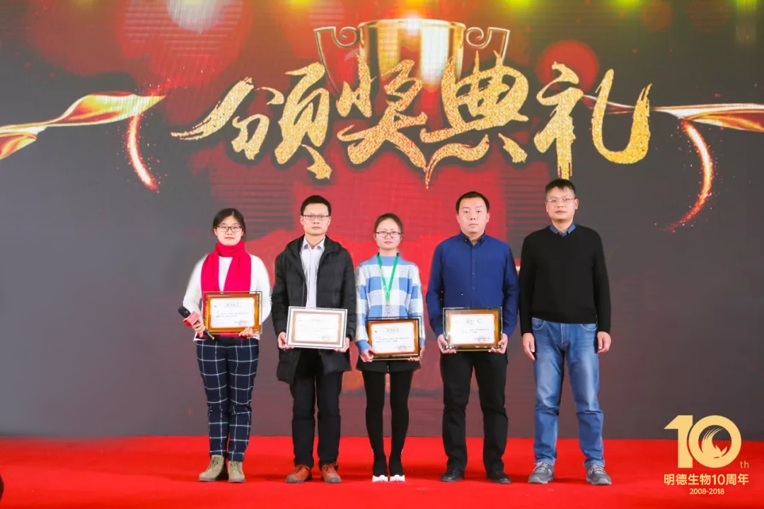 精彩的頒獎(jiǎng)典禮開始了,頒獎(jiǎng)分為兩輪,首先隆重頒發(fā)的是明德生物2018年度優(yōu)秀新員工、文化之星、績(jī)效之星、領(lǐng)導(dǎo)力成長(zhǎng)之星四個(gè)獎(jiǎng)項(xiàng)。緊接著,生產(chǎn)部帶來了充滿詩(shī)情畫意的舞蹈《水墨漓江美》。接下來,王穎總再一次登上舞臺(tái)親自主持了第二輪頒獎(jiǎng),依次頒發(fā)了明德生物2018年度卓越創(chuàng)新研發(fā)貢獻(xiàn)獎(jiǎng)、總經(jīng)辦特殊貢獻(xiàn)個(gè)人獎(jiǎng)及團(tuán)隊(duì)獎(jiǎng)、五周年員工獎(jiǎng)等獎(jiǎng)項(xiàng)!給予了優(yōu)秀的明德人及卓越的明德團(tuán)隊(duì)高度的肯定和激勵(lì)!
