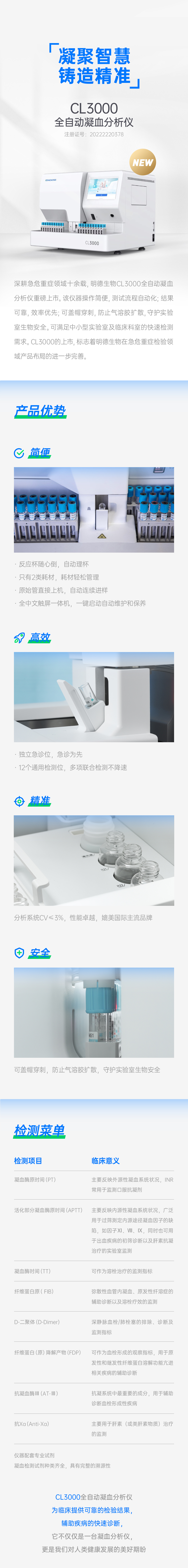 新品速遞 | 明德生物急危重癥診斷家族新成員CL3000全自動(dòng)凝血分析儀