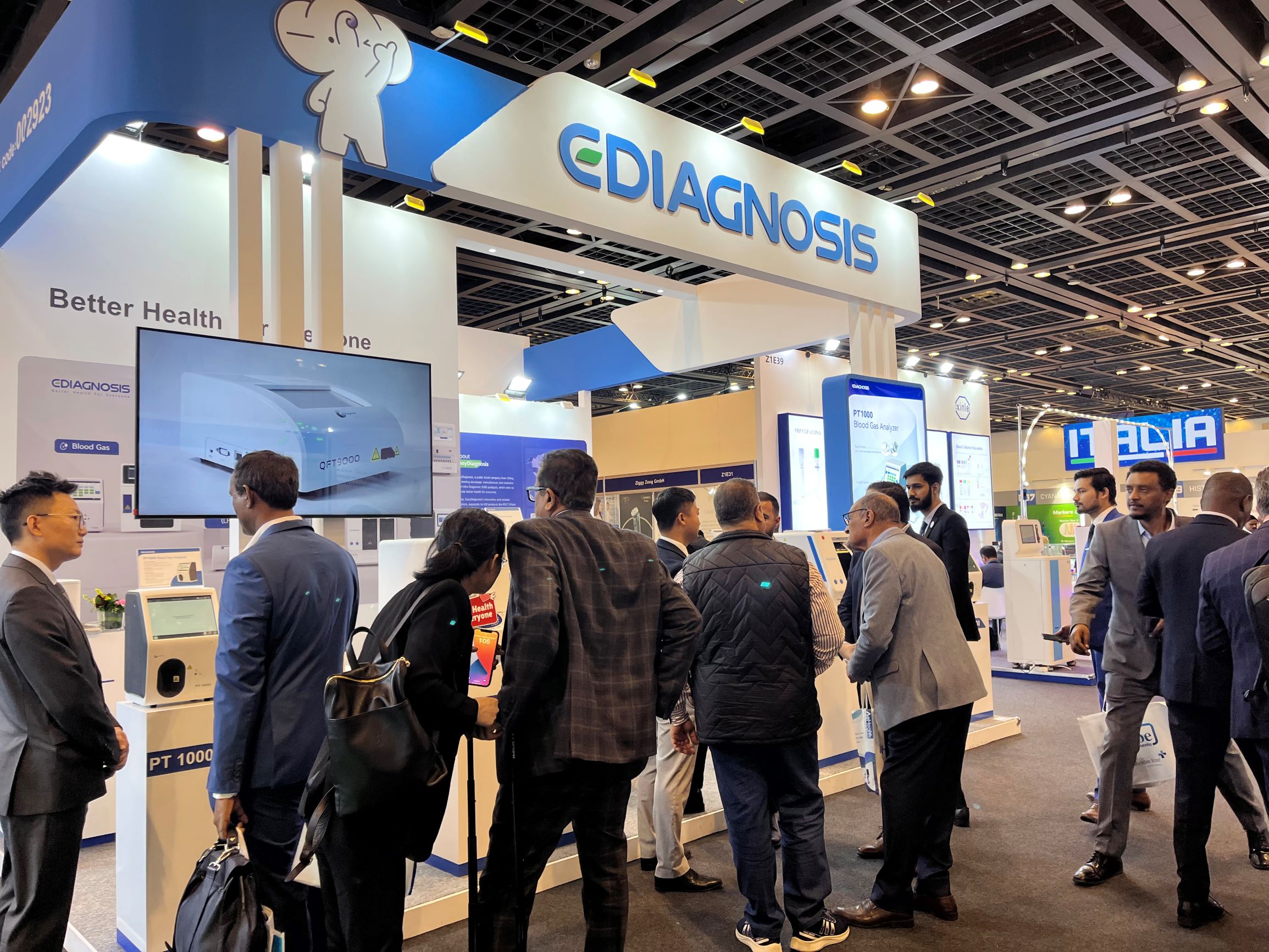 作為Medlab  Middle East的“?”,明德生物再度盛裝亮相Zaabeel 館。今年以科技感十足的明小象IP形象為全新視覺元素,一開展便吸引了眾多參觀者的目光。