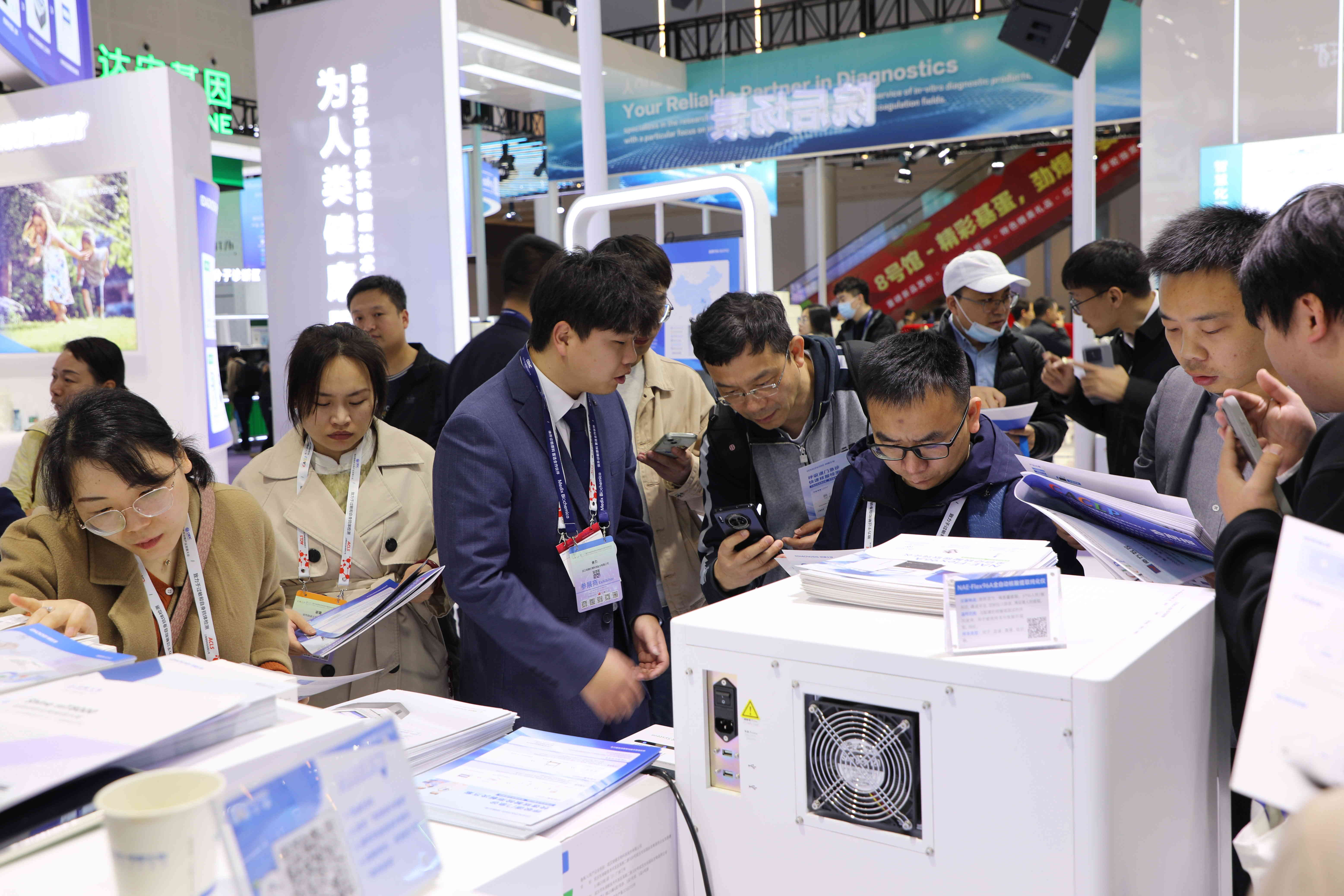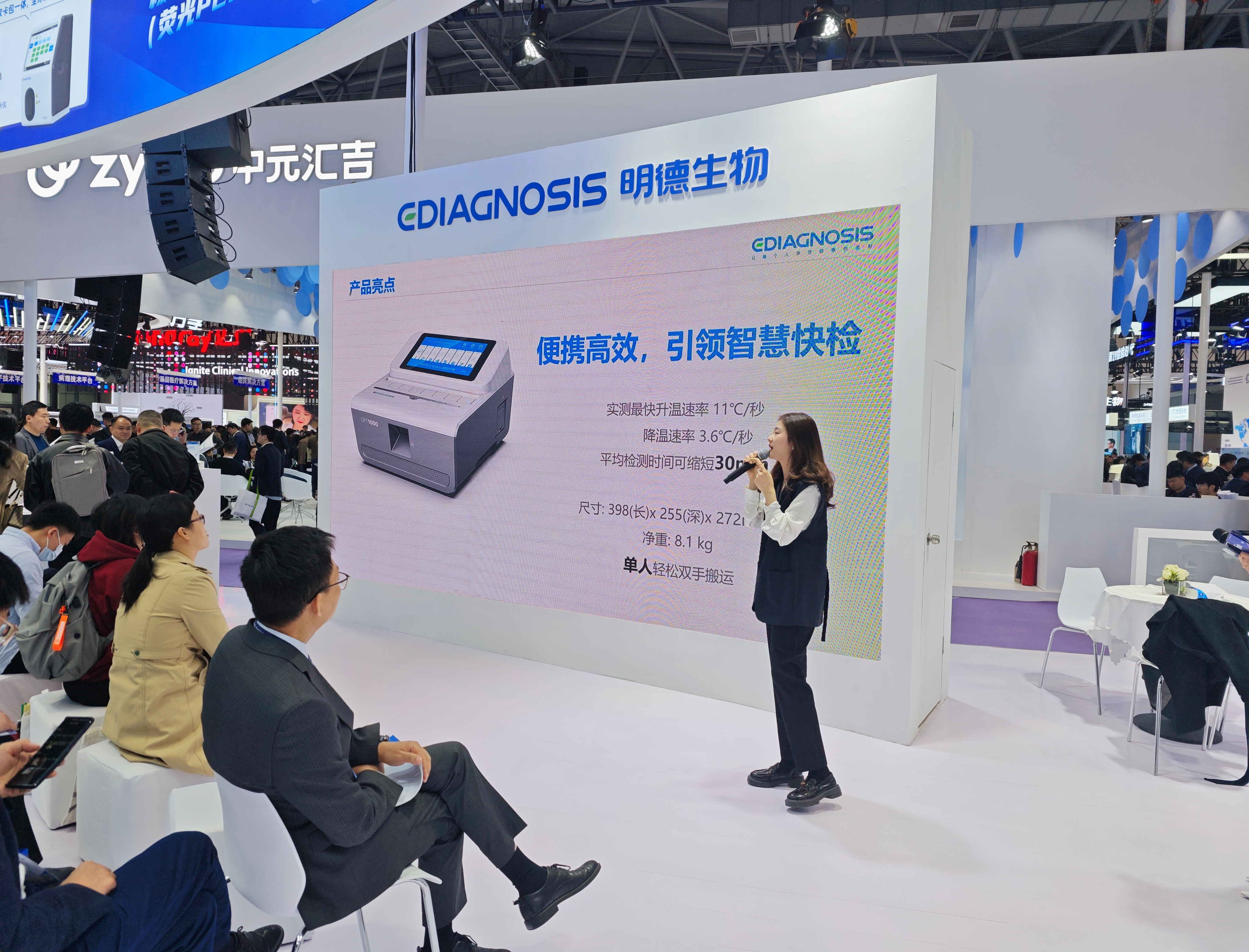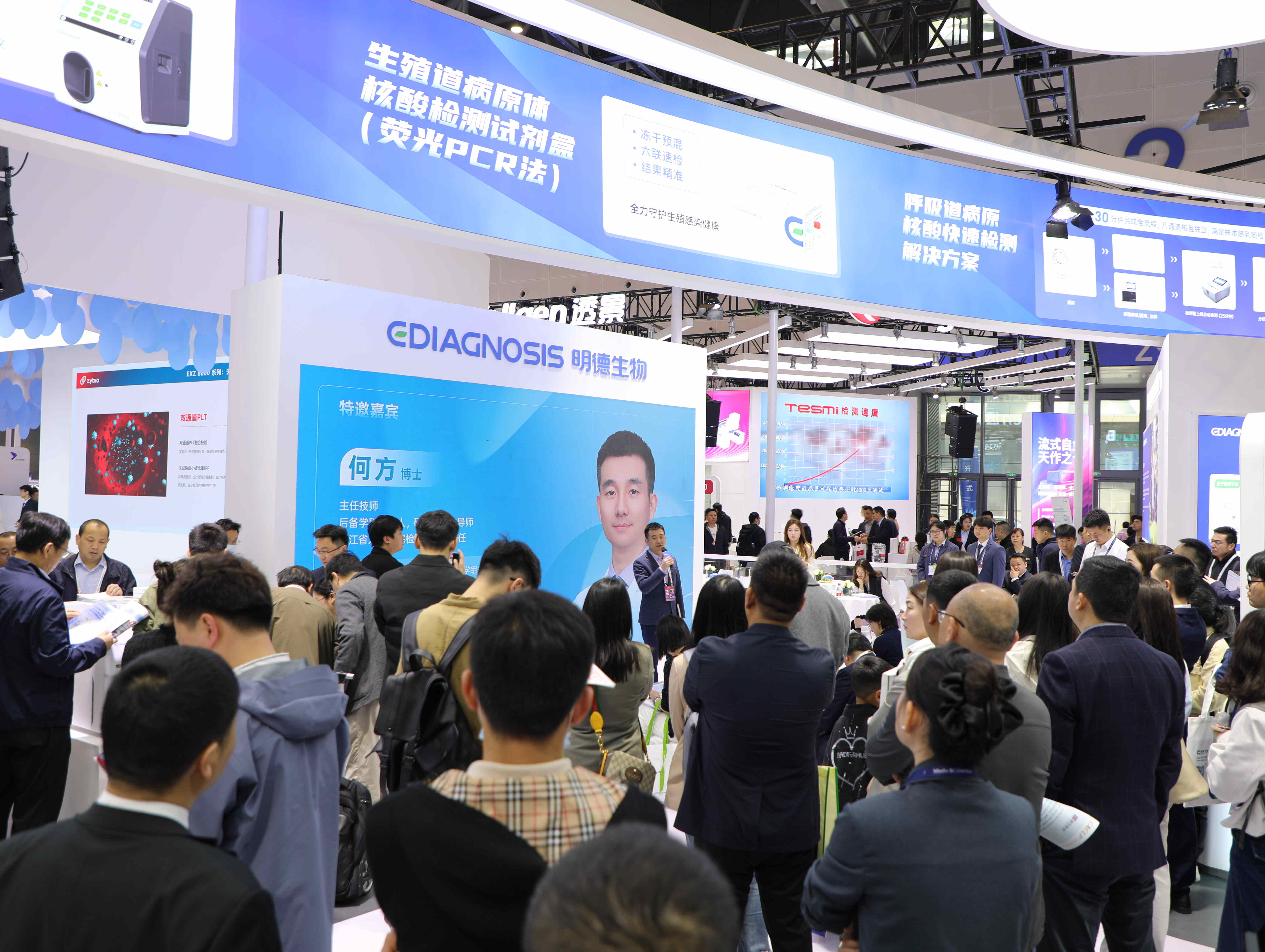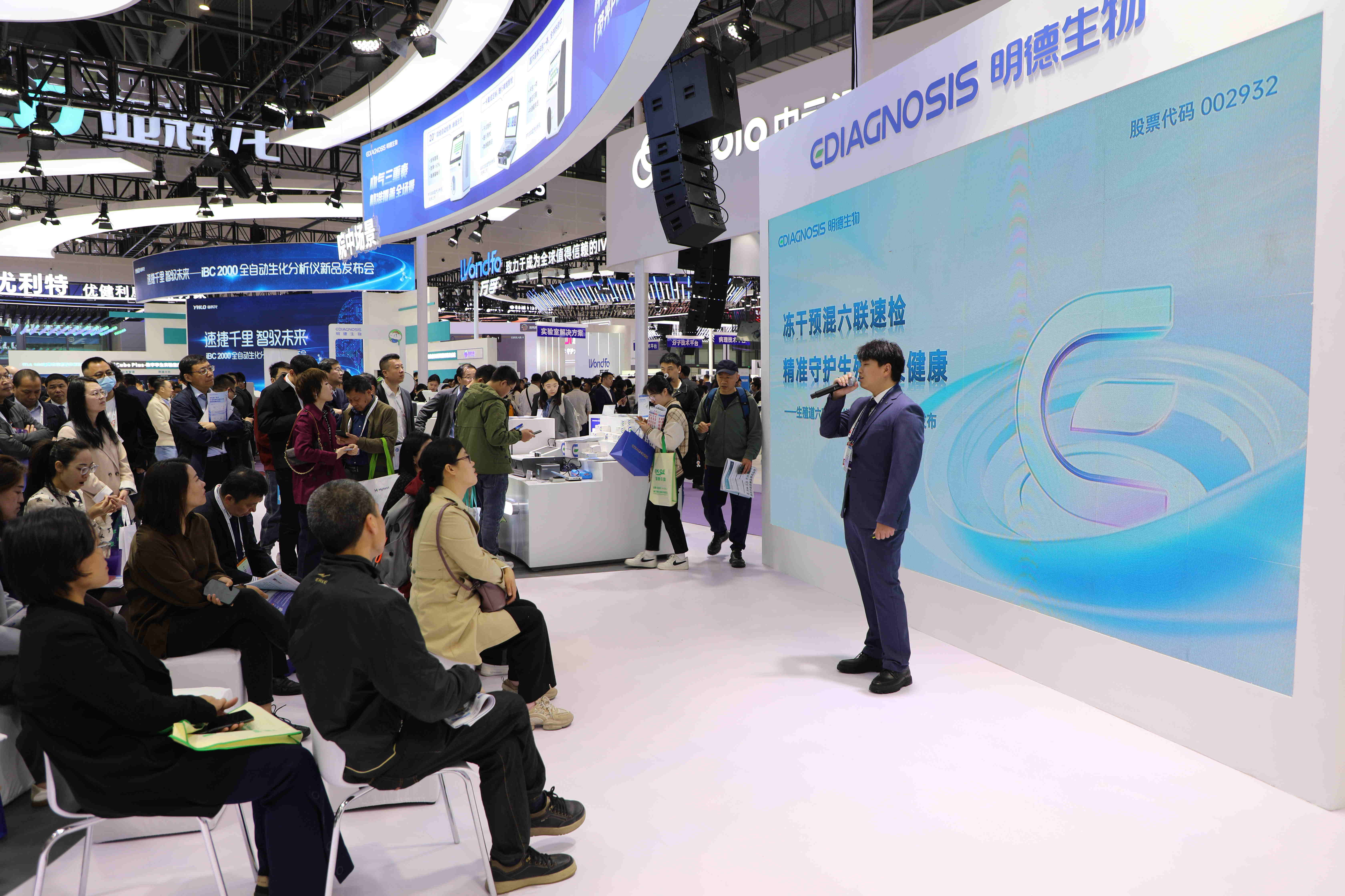 發(fā)布會現(xiàn)場氣氛熱烈,明德展臺始終被人流包圍。互動環(huán)節(jié)更是激發(fā)了觀眾的熱情參與,人潮涌動,展現(xiàn)出了明德生物新品的吸引力。