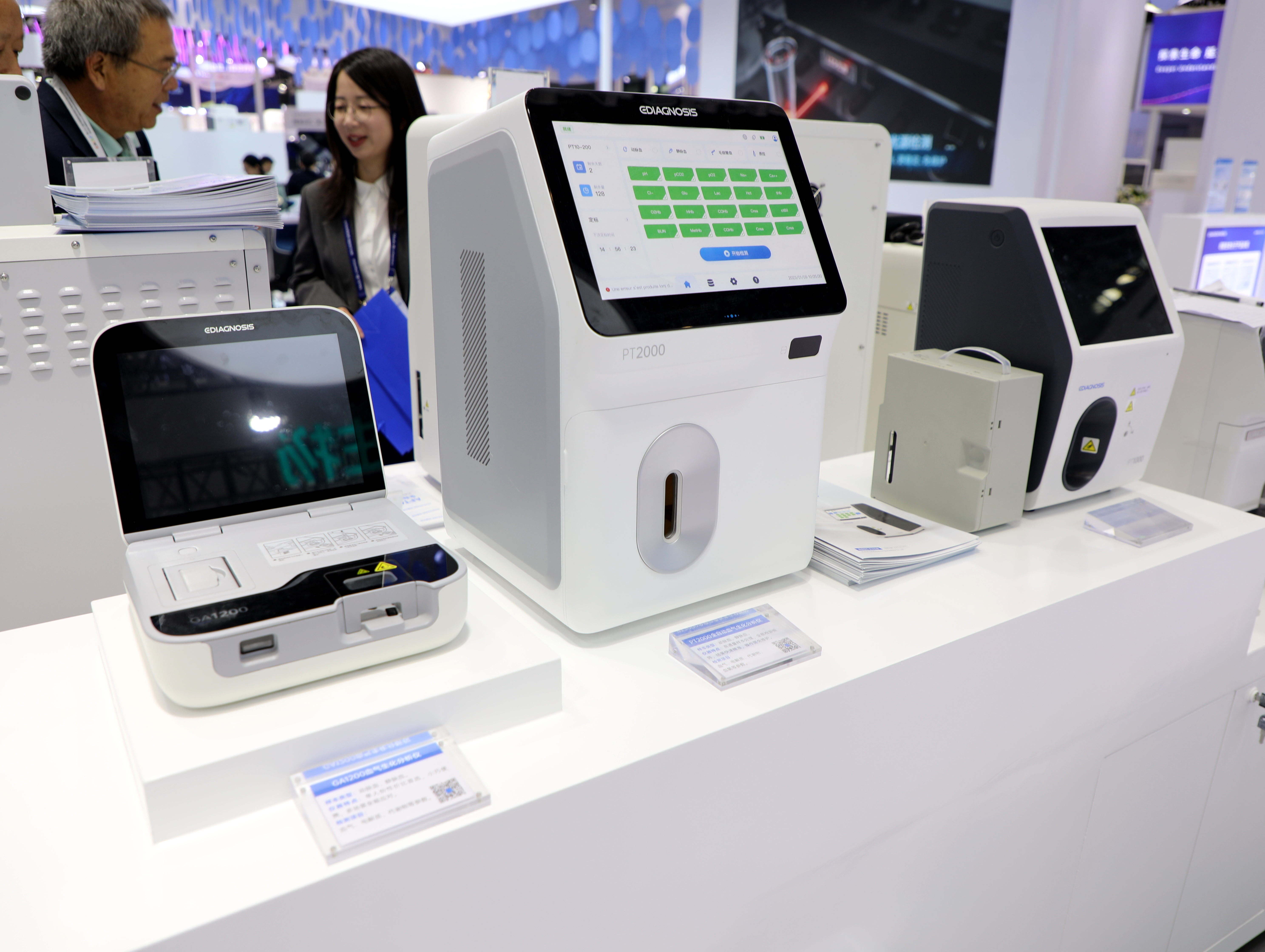 此外,在院中場景的危重癥板塊,明德生物首次攜血氣家族三大產(chǎn)品參展亮相,包括國內(nèi)首家卡包一體濕式血氣分析儀PT1000,以及即將上市的濕式血氣分析儀PT2000 和干式血氣分析儀GA1200。這兩款新品引發(fā)眾多訪客興趣,并圍繞產(chǎn)品性能、檢測項目以及應(yīng)用場景深入溝通交流,訪客們表示十分期待兩款產(chǎn)品上市。