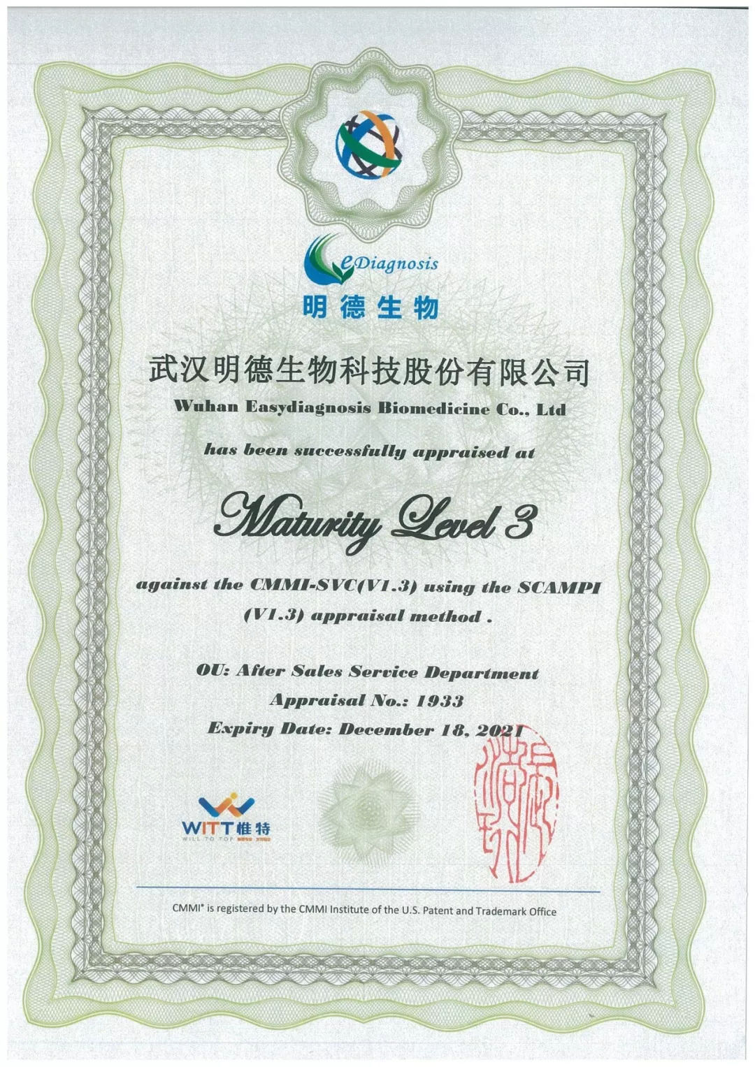 近日,武漢明德生物科技股份有限公司通過CMMI-SVC(V1.3)評(píng)估認(rèn)證。本次CMMI-SVC評(píng)估通過,標(biāo)志著明德生物的服務(wù)管理能力和交付質(zhì)量等方面均已達(dá)到國(guó)際水平。