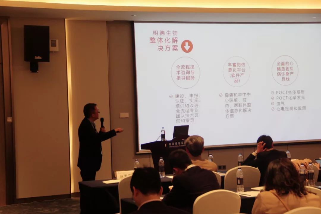 明德生物市場總監(jiān)蔡發(fā)宣做了胸痛中心、卒中中心、心電網(wǎng)絡軟硬件一體化建設解決方案的演講,充分展示了明德生物在急危重癥醫(yī)療服務領域的實力和優(yōu)勢。