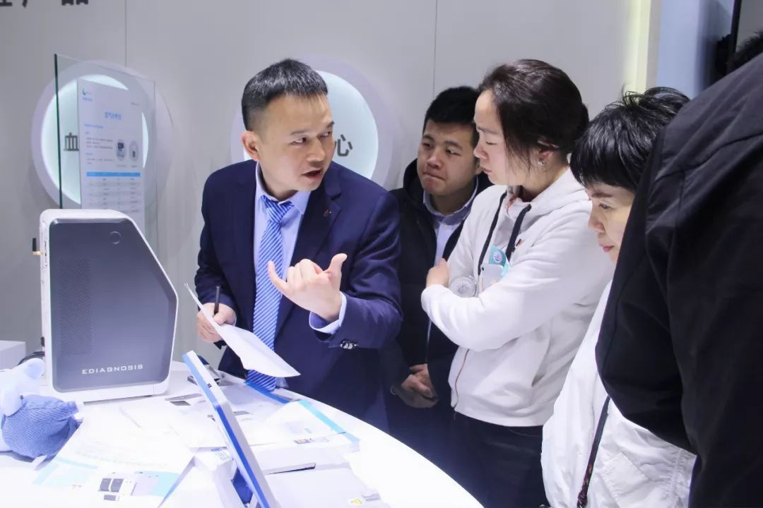 明德生物新產品吸引了眾多專業(yè)觀眾前來咨詢交流,化學發(fā)光、血氣、分子診斷、胸痛中心板塊的展臺前都聚集了大量用戶。展會攜帶的2000多份產品資料,全部被觀眾領完。明德人個個精神抖擻,耐心、細心解答客戶們的提問。