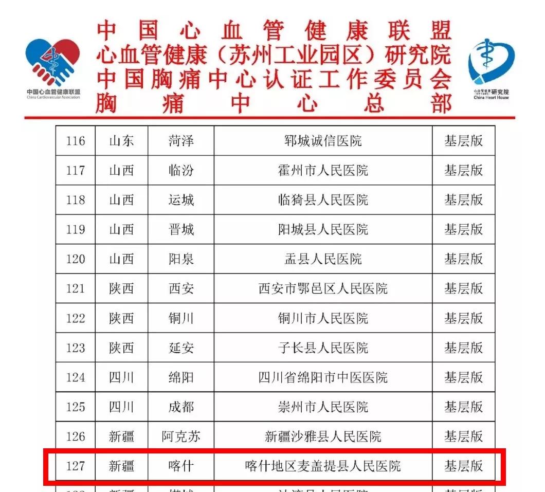 2019年7月14日,胸痛中心總部發(fā)布《關(guān)于2019年度第二批次中國胸痛中心及基層胸痛中心通過認證單位公告》,146家胸痛中心建設(shè)單位順利通過認證,由明德生物全程參與指導認證的新疆喀什地區(qū)麥蓋提縣人民醫(yī)院通過認證!