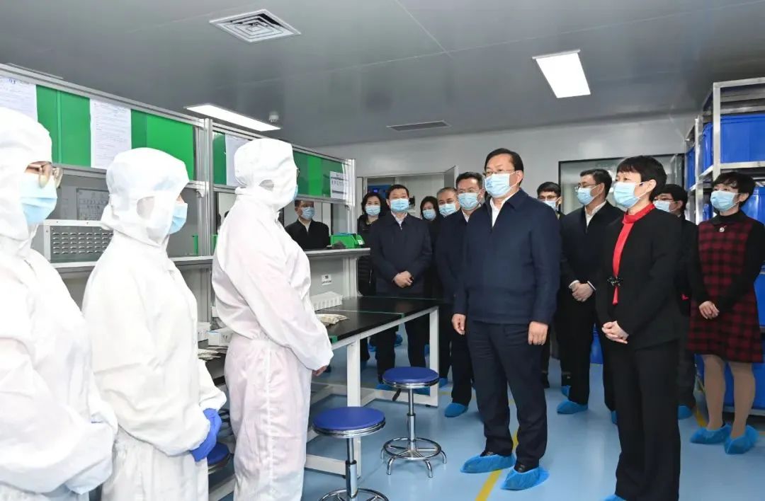 2021年2月16日,農(nóng)歷大年初五上午,湖北省委常委、武漢市委書記王忠林,市委副書記、市長(zhǎng)程用文一行蒞臨明德生物生產(chǎn)車間,向堅(jiān)守崗位的員工們致以新春祝福,并詳細(xì)的了解了企業(yè)生產(chǎn)和研發(fā)情況。明德生物董事長(zhǎng)陳莉莉博士、聯(lián)合創(chuàng)始人王穎博士全程接待。