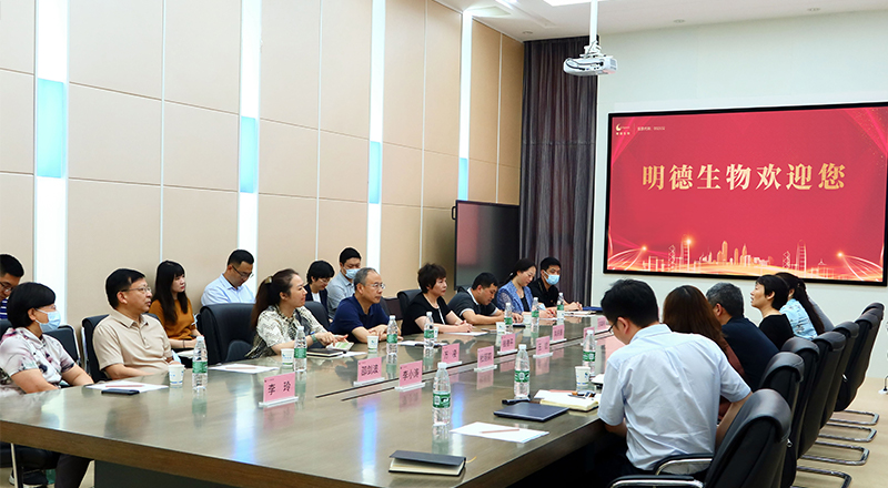 明德生物董事長(zhǎng)陳莉莉和副總經(jīng)理王銳接待劉慶香巡視員一行,陪同參觀了明德文化科技展廳,并舉行交流座談會(huì)。
